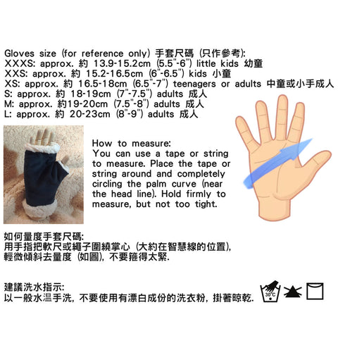 size XS: approx. 16.5-18cm (6.5"-7") kids, teenager, or adults with small hands