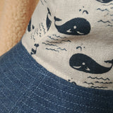 Reversible and Adjustable Fisherman Hat (Blue Whales) Bucket Hat for Toddler Little Boys Girls. 自製可調節鬆緊雙面漁夫帽 (藍鯨/鯨魚圖案)